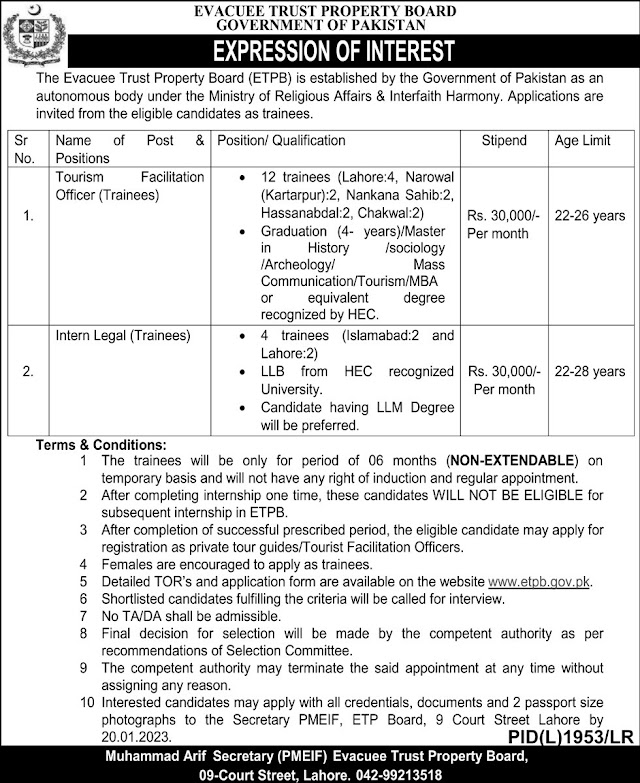 Government Of Pakistan Evacuee Trust Property Board Jobs 2023