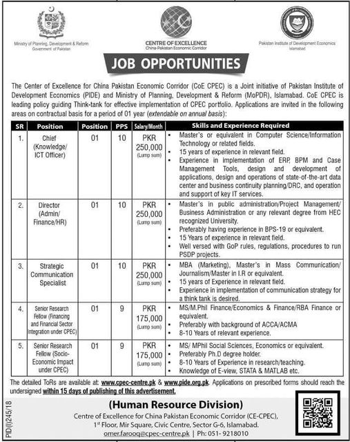 CHINA PAKISTAN ECONOMIC CORRIDOR (CPECSP) JOBS 2023